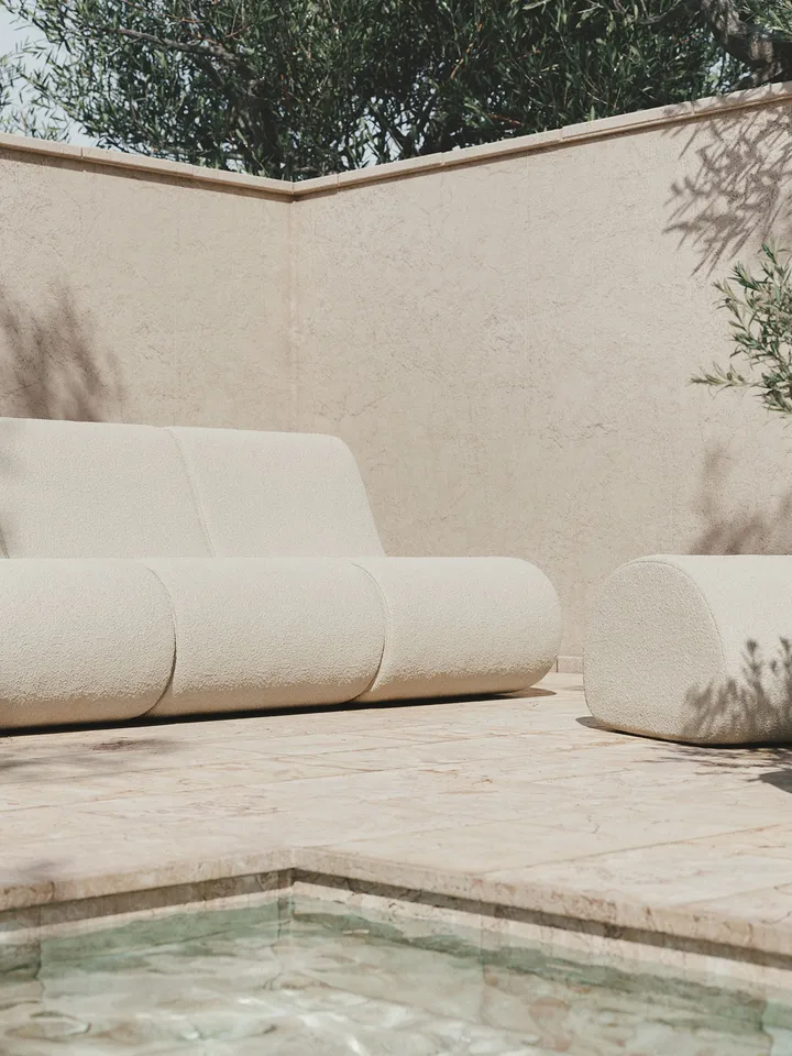 Rouli center module pure bouclé modulsofa fra Ferm Living er laget av stoff, polypropylen, polyuretan og polyester. Denne allsidige sofaen, hvis design er inspirert av bølgenes myke bevegelse, kan brukes både innendørs og utendørs. Med avtagbart trekk for enkel rengjøring og en lett skumpolstring tilpasser Rouli-serien seg smidig til ulike miljøer.