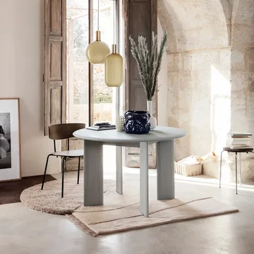 View gulvteppe 140x180 cm er et originalt teppe som har hentet sin inspirasjon fra et flyfoto av jorden. Formen gir assosiasjoner til geometri da det ser ut til å være en blanding mellom et kvadratisk og et rundet teppe. Det tuftede teppet er håndlaget av myk og slitesterk newzealandsk ull og har et grafisk mønster bestående av fargeblokker i ulike matchende farger. Teppe er delvis utstyrt med dusker og blir et virkelig blikkfang i stuen eller soverommet.