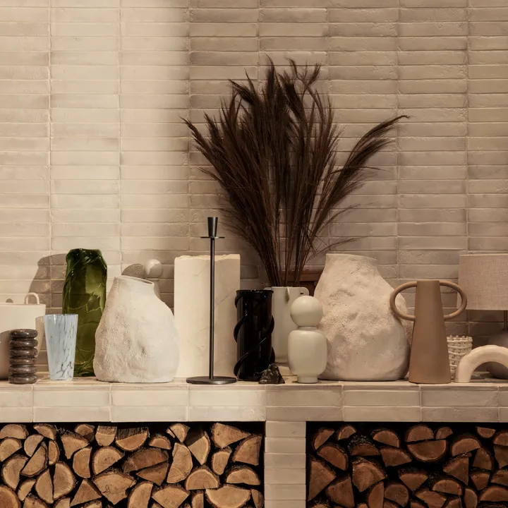 Vulca vase offwhite fra Ferm Living er en stor vase med en herlig organisk form som er like dekorativ med som uten blomster. I tillegg til den ujevne formen har Vasen Vulca en grovkornet overflate som gir hver vase et unikt uttrykk.