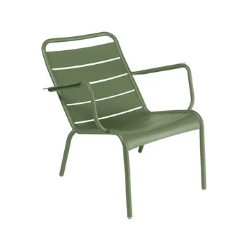Luxembourg armstol, lav fra Fermob er en behagelig, avslappet utelenestol designet av Frederic Sofia. Den inviterer til langsomme stunder på balkongen eller i hagen med sin omsluttende sittedybde og lette uttrykk. Perfekt som lese- eller loungelenestol ved terrassen — stabil og enkel å flytte dit solen eller skyggen er. En tidløs favoritt i sittegruppen på uteplassen som kombinerer komfort, god design og holdbar konstruksjon.