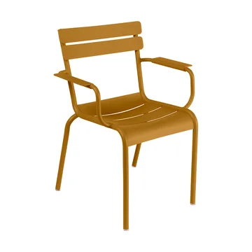 Luxembourg armstol fra Fermob er en komfortabel og veldesignet utemøbel fra Luxembourg-serien, designet av Frederic Sofia. Armstolen har et behagelig sete og lav rygg som inviterer til lange stunder på balkongen eller i hagen, og den stablebare konstruksjonen gjør den enkel å oppbevare når sesongen er over. Med tydelig fransk designfølelse blir stolen et friskt og pålitelig innslag på uteplassen din — praktisk, holdbar og lettplassert for både avslapning og sosiale stunder.