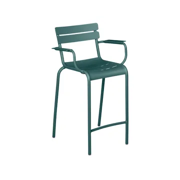 Luxembourg barstol med armlener fra Fermob er en høy utendørsstol i aluminium, designet av Frédéric Sofia som en naturlig forlengelse av den ikoniske Luxembourg-serien. Det buede setet og ryggstøtten i aluminiumribber følger kroppens form og gir stabil, velbalansert støtte også i den høyere sittehøyden, mens armlenene bidrar til en avslappet og trygg sittestilling. Konstruksjonen i aluminiumsrør gjør barstolen lett å håndtere, samtidig som den er stabelbar og utstyrt med lyddempende føtter som gir en stille og behagelig bruk. Overflatebehandlet for å være UV-bestandig og beskyttet mot korrosjon er Luxembourg barstol tilpasset for utendørs bruk over tid, også i mer krevende miljøer.