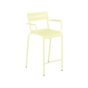 Luxembourg barstol med armlener fra Fermob er en høy utendørsstol i aluminium, designet av Frédéric Sofia som en naturlig forlengelse av den ikoniske Luxembourg-serien. Det buede setet og ryggstøtten i aluminiumribber følger kroppens form og gir stabil, velbalansert støtte også i den høyere sittehøyden, mens armlenene bidrar til en avslappet og trygg sittestilling. Konstruksjonen i aluminiumsrør gjør barstolen lett å håndtere, samtidig som den er stabelbar og utstyrt med lyddempende føtter som gir en stille og behagelig bruk. Overflatebehandlet for å være UV-bestandig og beskyttet mot korrosjon er Luxembourg barstol tilpasset for utendørs bruk over tid, også i mer krevende miljøer.