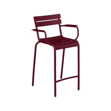 Luxembourg barstol med armlener fra Fermob er en høy utendørsstol i aluminium, designet av Frédéric Sofia som en naturlig forlengelse av den ikoniske Luxembourg-serien. Det buede setet og ryggstøtten i aluminiumribber følger kroppens form og gir stabil, velbalansert støtte også i den høyere sittehøyden, mens armlenene bidrar til en avslappet og trygg sittestilling. Konstruksjonen i aluminiumsrør gjør barstolen lett å håndtere, samtidig som den er stabelbar og utstyrt med lyddempende føtter som gir en stille og behagelig bruk. Overflatebehandlet for å være UV-bestandig og beskyttet mot korrosjon er Luxembourg barstol tilpasset for utendørs bruk over tid, også i mer krevende miljøer.