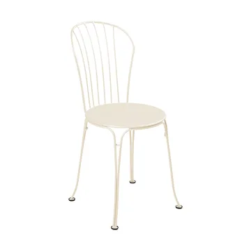 Opera+ stol fra Fermob er en elegant og lett utendørsstol der myke linjer møter teknisk presisjon og et gjennomarbeidet formspråk. Rammen er laget av ståltråd med et stabilt sete i stålplate og en rygg i én enkelt bøyd ståltråd, hvis svake helling gir naturlig støtte og en behagelig sittefølelse. Det finlemmede, utsvingte understellet skaper god balanse samtidig som stolen føles luftig og lett å plassere. Den UV-resistente overflatebehandlingen og Fermobs høye anti-korrosjonsbeskyttelse gjør Opera+ stol fra Fermob godt rustet for utendørs bruk over tid. Den stabelbare konstruksjonen gjør stolen enkel å oppbevare når den ikke er i bruk.
