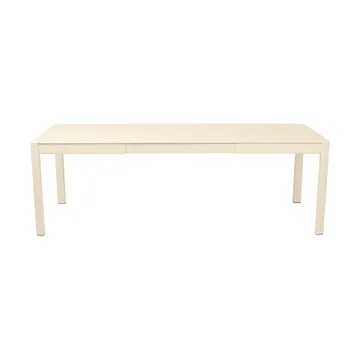 Ribambelle L bord fra Fermob er et fleksibelt spisebord skapt for fellesskap og måltider under åpen himmel. Den rene, moderne formen fremhever aluminiumets letthet og styrke, mens den innovative konstruksjonen rommer to ileggsplater som oppbevares under bordplaten og holdes helt ute av syne. Teleskopsystemet gjør det enkelt å tilpasse bordets lengde etter selskap og anledning, uten å forstyrre helhetens harmoniske linjer. Materialet er værbestandig og behandlet med UV-beskyttende pulverlakk som bevarer både farge og overflate sesong etter sesong. Kombinasjonen av funksjon, kvalitet og enkelhet gjør møbelet til et naturlig samlingspunkt i hagen eller på terrassen. Ribambelle L bord fra Fermob er et eksempel på hvordan smart teknologi og tidløs fransk design kan møtes i en form som både forenkler og forskjønner livet utendørs.