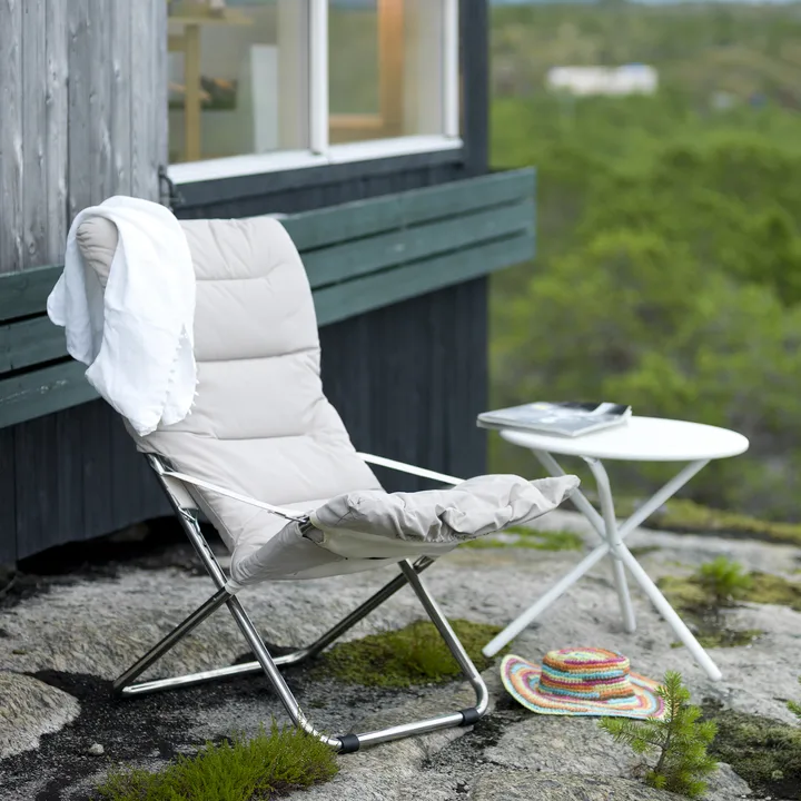 Fiesta Soft solstol fra Fiam er en komfortabel solseng med myke, slitesterke puter som innbyr til lange stunder utendørs. Stolen kan justeres i tre posisjoner slik at du selv velger mellom oppreist lesing eller mer liggende avslapning, og den er sammenleggbar noe som gjør den enkel å flytte og ta med til balkongen, hagen eller stranden. En tidløs form og gjennomtenkt funksjon gjør Fiesta Soft til et pålitelig valg for avslapning i sommerens alle stunder.