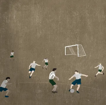 Fotboll plakat 50x70 cm fra Fine Little Day er et offset-trykk av et originalmaleri i akryl og kritt skapt av Elisabeth Dunker. Den lekne plakaten som forestiller en pågående fotballkamp, blir et gøyalt innslag hjemme hos den fotballinteresserte.