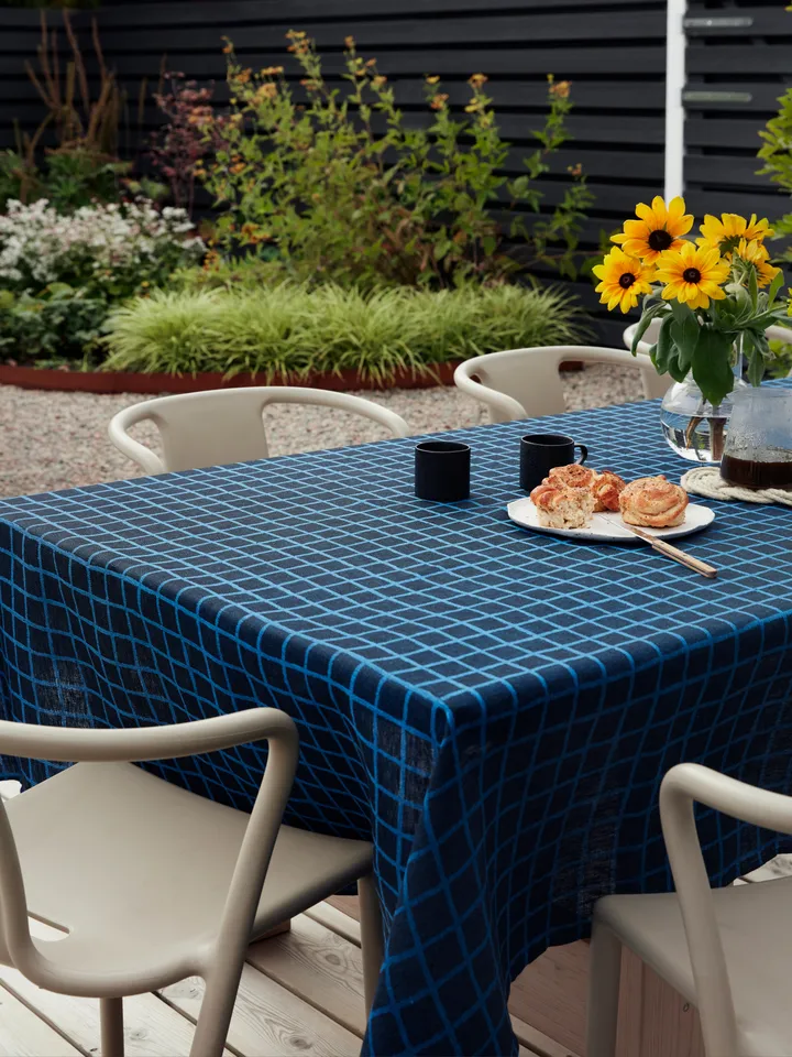 Beskytt bordplaten mot søl og flekker med en nydelig duk som Rutig jacquardvevd bordduk 147x147 cm fra Fine Little Day. Duken har et klassisk rutemønster med håndtegnede streker som skaper ekstra liv og bevegelse. Duken passer å ha framme både til hverdags og ved festlige anledninger.
