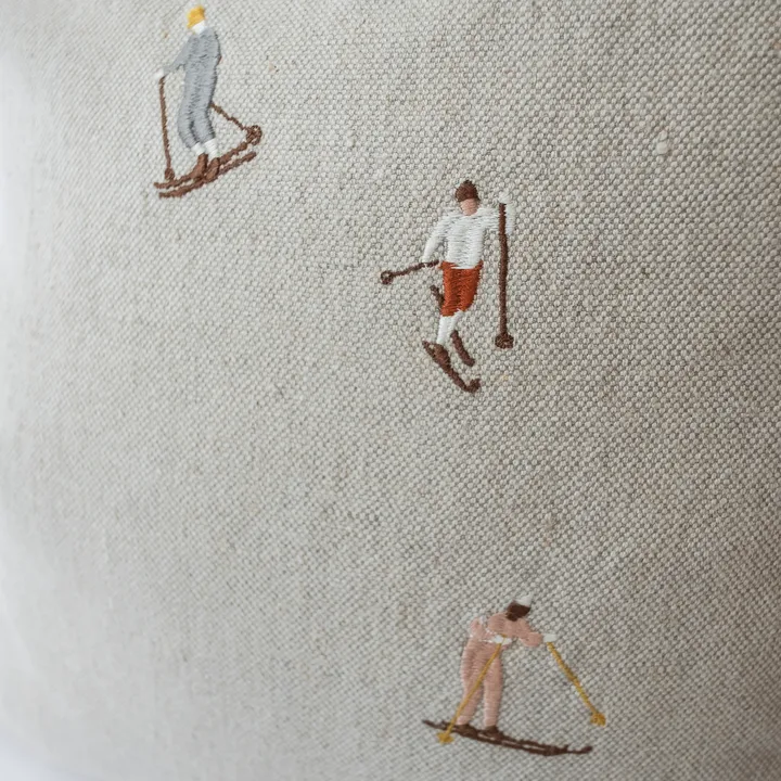 Skiers putetrekk 48x48 cm fra svenske Fine Little Day er laget av vakkert, ubleket naturmateriale og er utsmykket av små broderte skiløpere i forskjellige poser - ren innredningsdrøm for alle som elsker vintersport. Et iøyenfallende putetrekk som passer like godt på hytta som hjemme i sofaen. Lukkes med glidelås under. Innerpute ikke inkludert.
