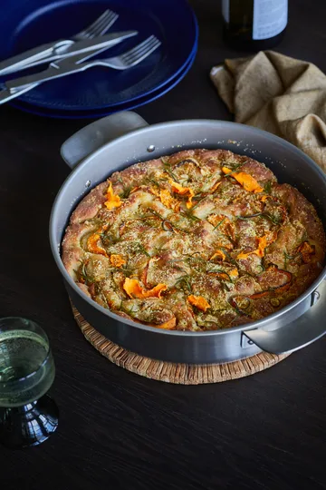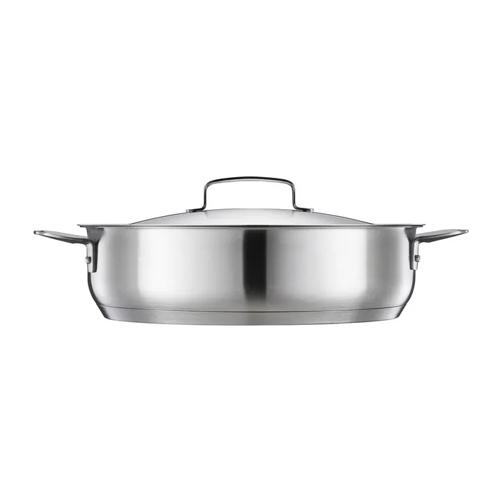 Den store All Steel-ovnspannen er designet av Pentagon Design for det finske varemerket Fiskars. Ovnspannen er laget i rustfritt stål og har et keramisk Ceratec-belegg som sprer varmen veldig effektivt og garanterer en perfekt stekeflate. Ovnspannen kommer også med måleskala på innsiden og tilhørende lokk med damphull. Bruk ovnspannen når du tilbereder stek eller annet kjøtt og kombiner den gjerne med andre fine produkter fra Fiskars!