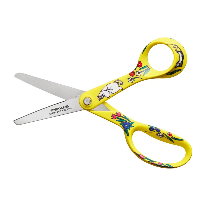 Mummi barnesaks 13 cm fra Fiskars er en klassisk saks av høy kvalitet laget i rustfritt stål og polypropylen. Unikt og patentert avrundet håndtak for mer komfort og kontroll. Perfekt tilpasset barns hender. Saksserien Mumin fra Fiskars er en samling sakser pyntet med illustrasjoner fra Mummitrollets fortryllende verden.