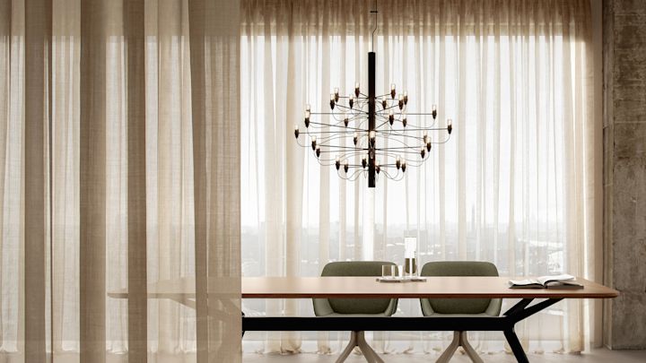 Flos er også kjent for å integrere lys med arkitektoniske rom. Deres pendellampe Aim, designet av Bouroullec-brødrene i 2013, er et glimrende eksempel. Med sine lange, justerbare kabler gir Aim full fleksibilitet i lysretning, og kombinerer funksjonalitet med skulpturell estetikk.