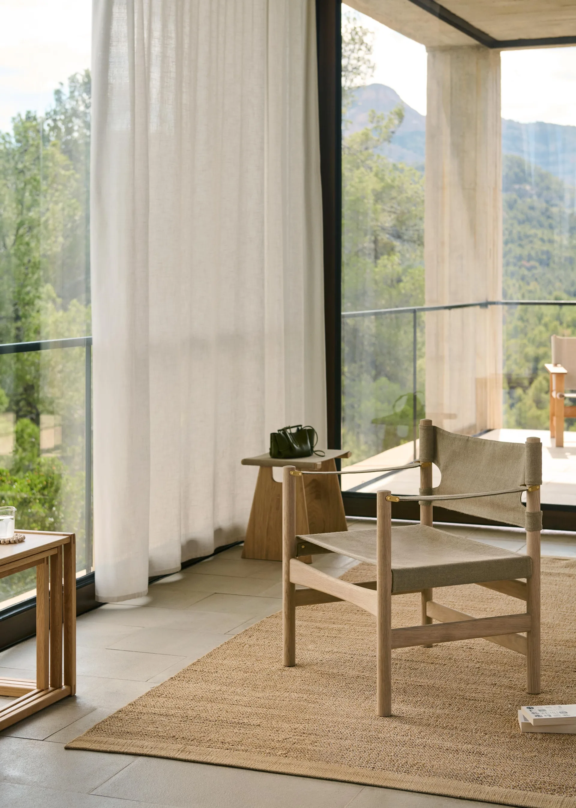 Seto krakk fra Fredericia Furniture er en hyllest til både skandinavisk og japansk håndverkstradisjon. Designet med Børge Mogensens filosofi som grunnlag, forener denne krakken massiv eik og kanvas i en enkel og elegant form. Inspirert av Japans lengste bro, Seto Ōhashi, har krakken en unik H-struktur som speiler broens skjønnhet.