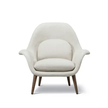 Swoon lenestol fra Fredericia Furniture er en komfortabel og organisk lenestol designet av Space Copenhagen. Skallet er laget i ett stykke hvor armlener og rygg danner en elegant skulpturel form, som skaper en moderne men samtidig innbydende silhuett. Swoon lenestol er tilgjengelig i flere trekk, puter og benutførelser, noe som gjør det enkelt å tilpasse den etter hjemmets stil. Med sitt ergonomiske sitteskall og myke pute tilbyr Swoon en luksuriøs komfort og blir et naturlig sted for avslapning i stuen.