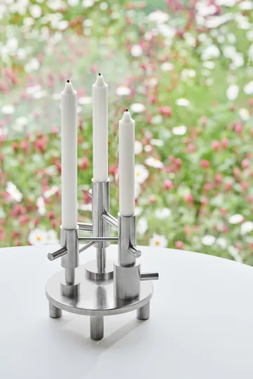 Jaime Hayon sin lysestake Large i messing fra Fritz Hansen har et design som er inspirert av den klassiske kammerlysestaken. Ved å sette sammen flere lysholdere og modernisere formen, har Hayon klart å gi dette blikkfanget av solid messing et skulpturelt uttrykk. Lysestaken passer like bra i sentrum av borddekorasjonen til en finere middag som på sidebordet på stuen sammen med flere lysestaker i samme serie.