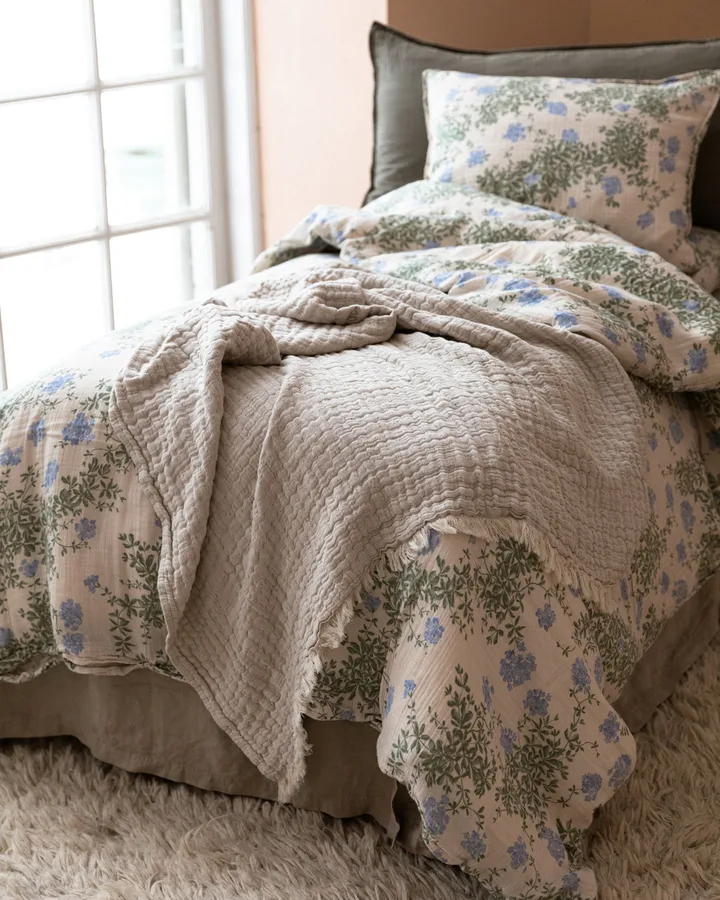 Plumbago Muslin sengesett fra Garbo&Friends er laget av bomullsmuslin av høyeste kvalitet. Dette sengesettet er designet for de søteste drømmer og prydes av Garbo&Friends signaturmønster. Dens enkle design med kun knappestengning lar materialet tale for seg selv.