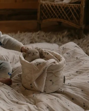 Viola Satin quilted kurv 2 deler fra Garbo&Friends er en elegant og praktisk oppbevaringsløsning laget av økologisk bomullssatin. Disse quiltede kurvene er perfekte for å holde orden på leker, tepper og andre små gjenstander. Sett inneholder to kurver for fleksibel bruk i hjemmet.