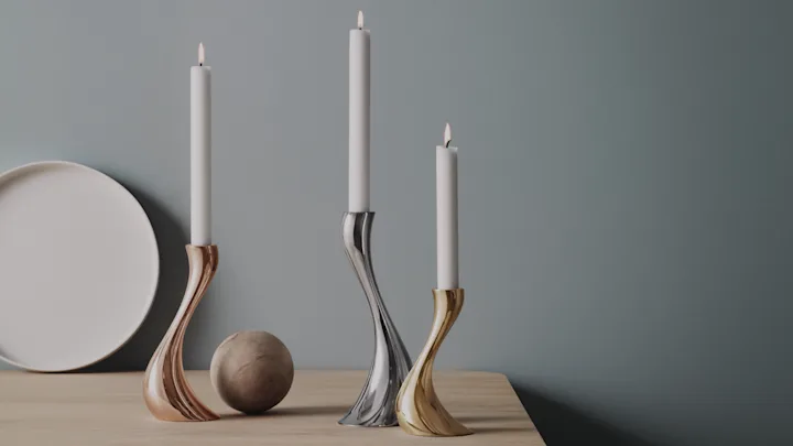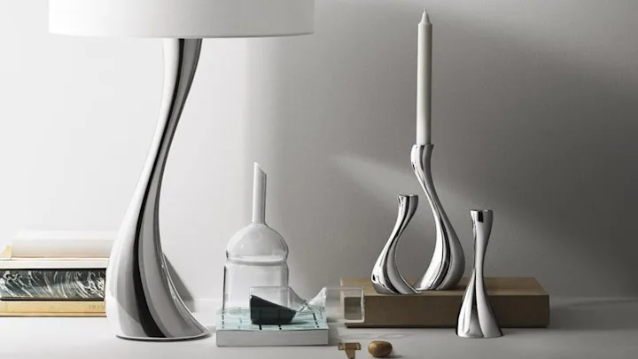 Georg Jensen har designet en rekke populære interiørartikler som både er vakre og funksjonelle. Lysestaker, vaser og skåler er ting som hører naturlig hjemme i ethvert hus.