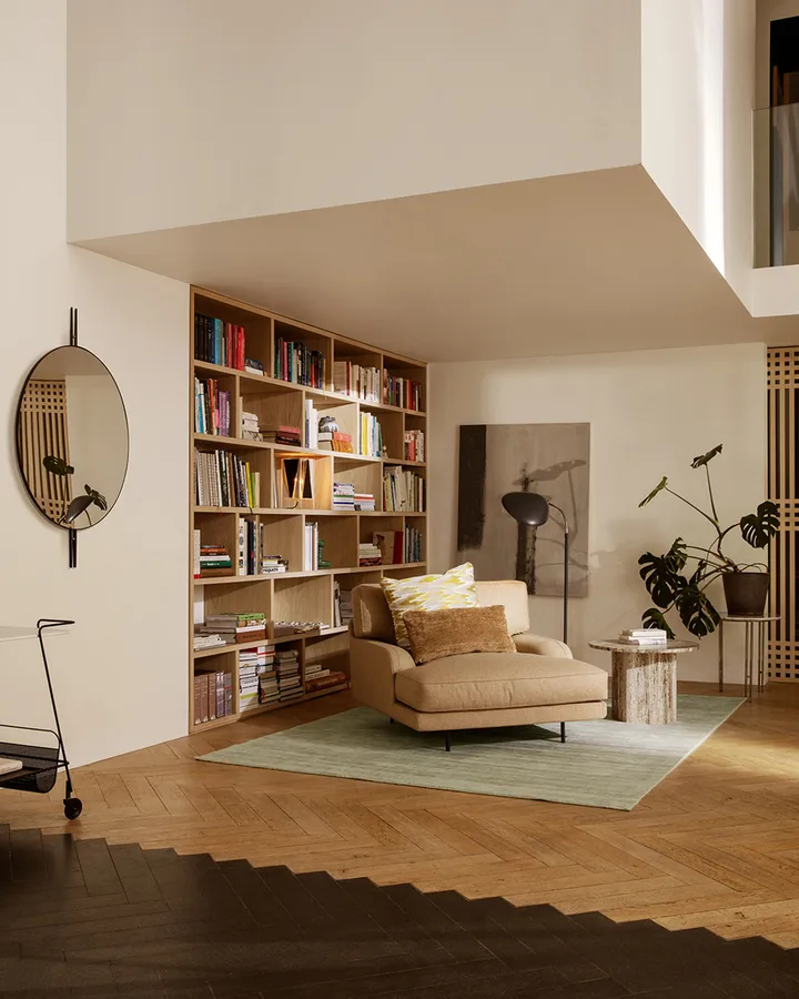 Flaneur loungelenestol fra Gubi er en romslig lenestol med høy komfort som føles både moderne og klassisk.