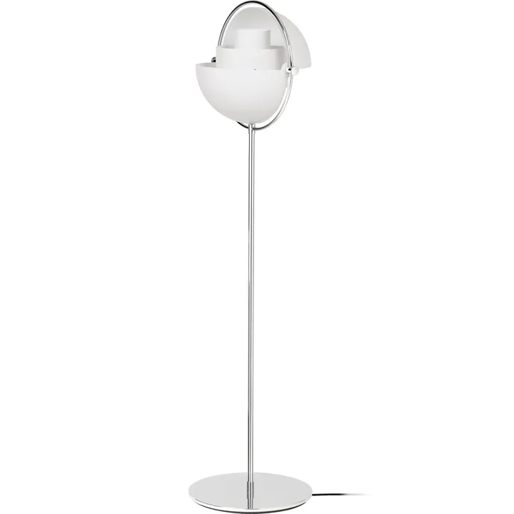 Designet på Multi-Lite gulvlampe fra Gubi ble tegnet i 1972 av Louis Weisdorf. Ytterskjermene er roterbare slik at lyset kan rettes enten oppover eller nedover, alternativt skape et asymmetrisk lysinntrykk som ligner mer på en kunstinstallasjon enn en gulvlampe. Utforsk gjerne de ulike fargekombinasjonene for å finne den som passer best i akkurat ditt hjem.