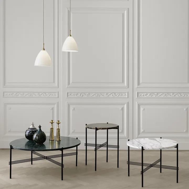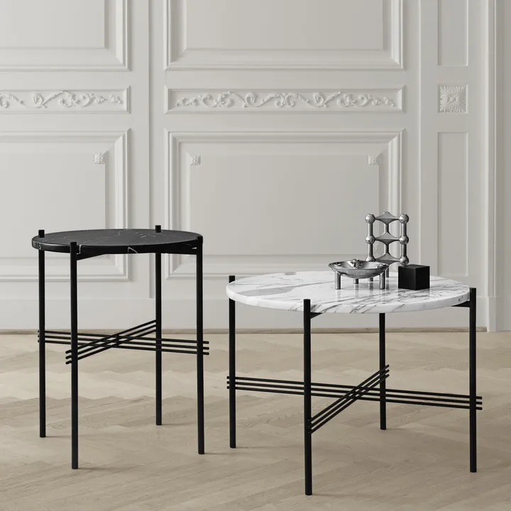 TS salongbord svarte bein Ø 55 cm, svart marmor GUBI