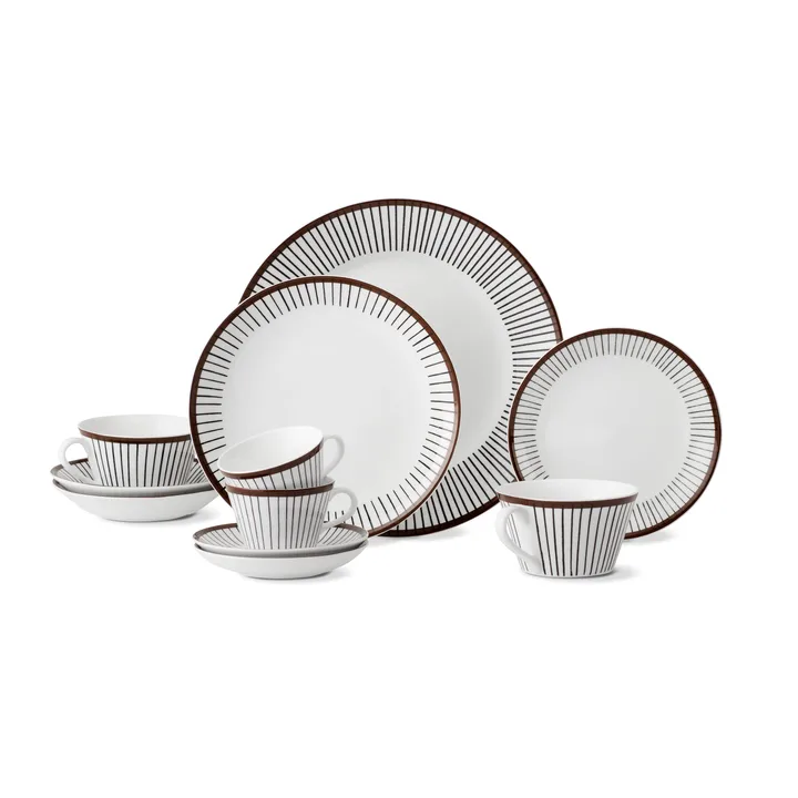 Server ettermiddagste i den ikoniske Ribb tekopp med tilhørende skål fra svenske Gustavsbergs Porslinsfabrik, designet av den velkjente designeren Stig Lindberg. Ribb-serien, tidligere kjent som "Spisa Ribb" ble lansert for første gang på den store hjemutstillingen H'55 i Helsingborg i 1955 og har etter det vært i produksjon to ganger: 1955-1974 og senere i 2003. Tekoppen er i likhet med øvrige deler i serien laget for hånd i høykvalitativt benporselen med den brun-hvite stripete dekoren som har blitt et kjennetegn på denne retro serien!
