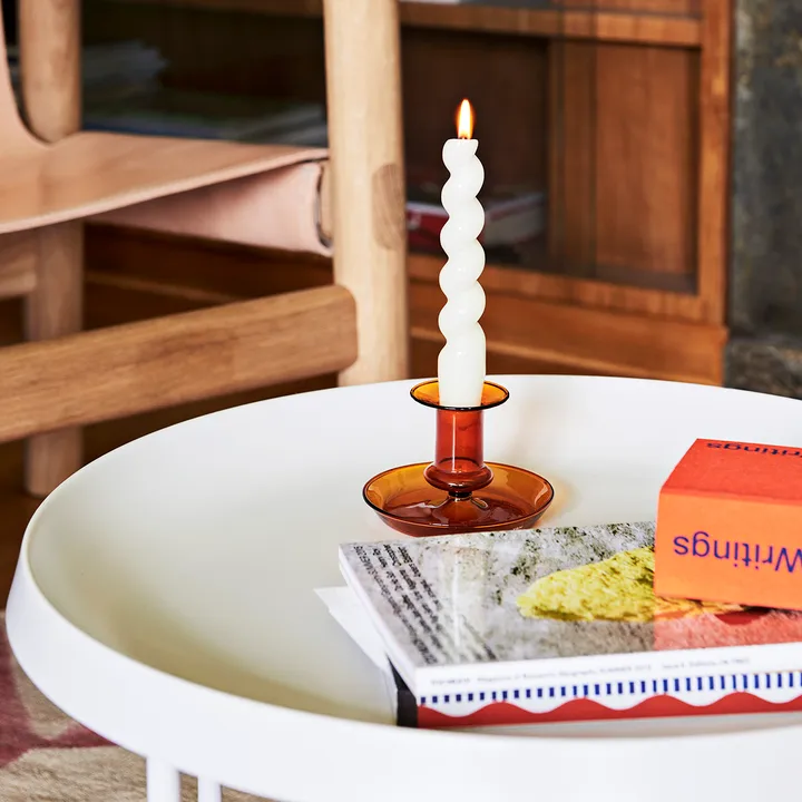 Flare lysestake fra HAY er en elegant og distinkt lysestake formgitt for å gi både varme og karakter i hjemmet. Den tynne profilen i varmebestandig borosilikatglass skaper et lett og luftig inntrykk, mens skålformen i foten gjør den til en dekorativ liten detalj også uten lys. Finnes i flere størrelser som kan kombineres for et personlig stilleben på spisebordet, vinduskarmen eller bokhyllen — en enkel måte å tilføre farge og form i innredningen din.