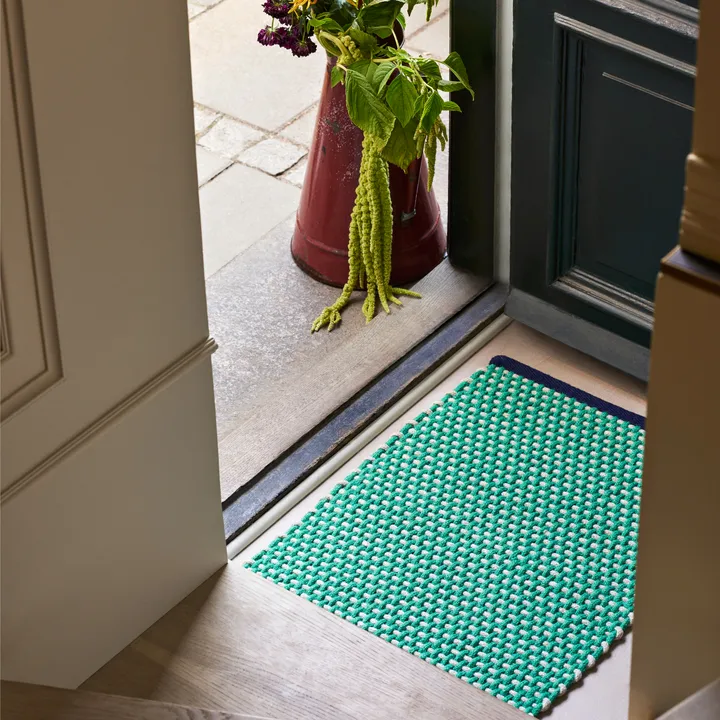HAY dørmatte fra danske HAY er en fargerik dørmatte i vakkert naturmateriale. I og med at matten er laget av ull og jute, er den både slitesterk og smussavvisende. Dørmatten har to forskjellige farger i veven som sammen danner et pent mønster, og suppleres av en aksentfarge på kortsidene. HAY dørmatte frisker opp entreen din på et øyeblikk!