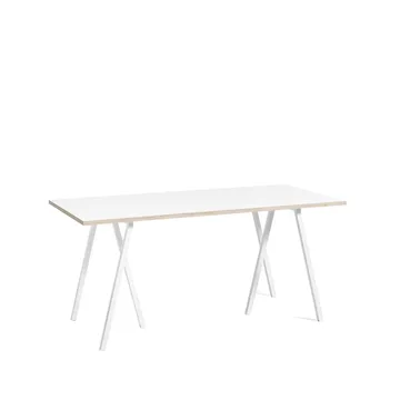 Loop Stand spisebord fra HAY, designet av Leif Jørgensen, er et stilfullt bord med distinkte ben som enkelt kan monteres på platen. For plater over 200 cm anbefales Loop Stand Support for stabilitet og holdbarhet over tid.