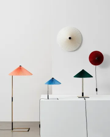 Matin table bordlampe Ø 30 cm fra HAY er en poetisk og moderne bordlampe designet av Inga Sempé. Den elegante ståltrådrammen i polert messing gir et lett og luftig inntrykk, mens skjermen i bomullsstoff skaper et mykt, behagelig lys. Lampens karakter er både dekorativ og funksjonell – perfekt på nattbordet, kommoden eller som stemningsskaper i lesekroken. En tidløs detalj som gir rommet varme og personlighet.