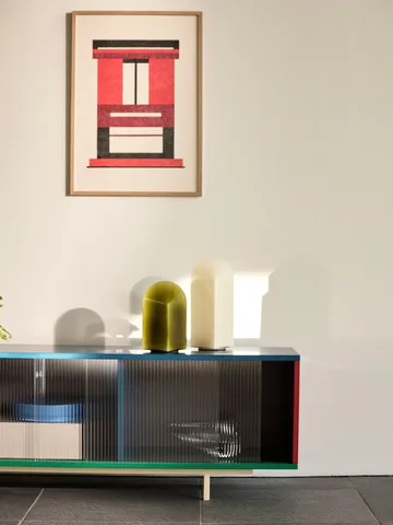 Parade bordlampe 24 cm fra HAY er en skulpturell og unik lampe designet av Viola Heyn-Johnsen og Jonas Trampedach. Med sin firkantede base og buede topp endrer lampens uttrykk seg avhengig av plassering, noe som gjør den leken og dekorativ i hjemmet. Parade fungerer like godt alene på en hylle eller kommode som sammen med andre størrelser for en dynamisk og personlig lyssetting. Den tidløse formen og solide håndverket gjør lampen til en elegant detalj i stue, soverom eller arbeidsområde.