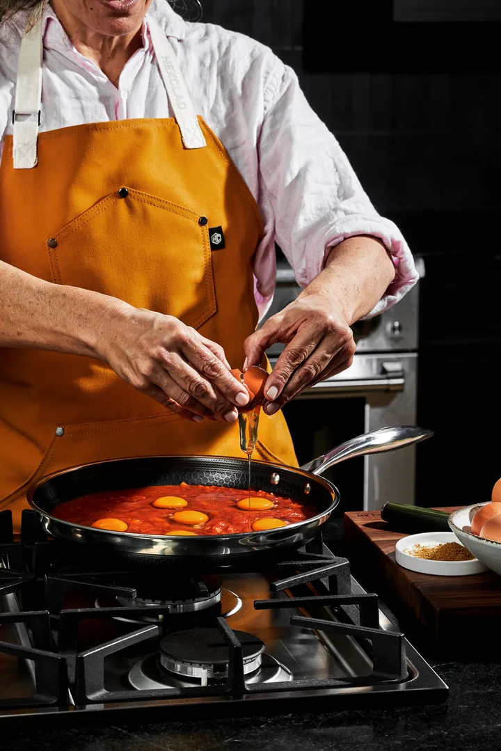 Hexclad stekepanne hybrid er en allsidig panne som briljerer ved mindre porsjoner som grønnsaker, egg eller omeletter. Perfekt for å lage sauser, reduksjoner eller enkeltporsjoner av protein. Med sin hybridteknologi tilbyr den utmerket varme kontroll uten skadelige kjemikalier, og er lett å rengjøre samt oppvaskmaskinsikker. Ovnsikker opptil 260 °C, induksjonsklar og metallredskapsikker, med håndtak som holder seg kalde. Det perfekte valget for mindre men kraftfulle kjøkkenoppgaver.
