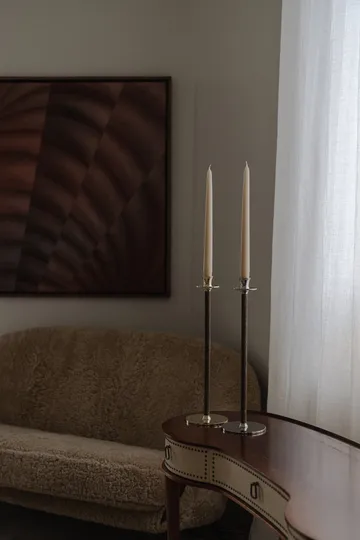 Alto Basso Lysestake fra Hilke Collection er en svenskprodusert lysestake i forkrommet messing og valnøttoljet eik, designet i samarbeid med Hanna Wessman. Den lekne kontrasten mellom det blanke metallet og det varme treet gir en innbydende følelse på bordet eller vinduskarmen. Funksjonell og dekorativ på samme tid — lett å plassere alene som fokus eller i gruppe for et levende lysspill. En tidløs detalj som løfter borddekkingen og skaper stemning i hjemmet.