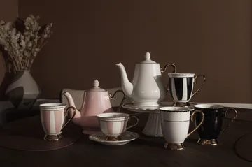 Lignano Sabbiadoro krus 28 cl fra Hilke Collection er laget i eksklusivt benporselen. Dette håndmalte kruset er pyntet med gullaksenter og har et unikt design som hever drikkopplevelsen din samtidig som det tilfører eleganse til hjemmet ditt. Serien er skapt av designeren Giovanna Hilke.