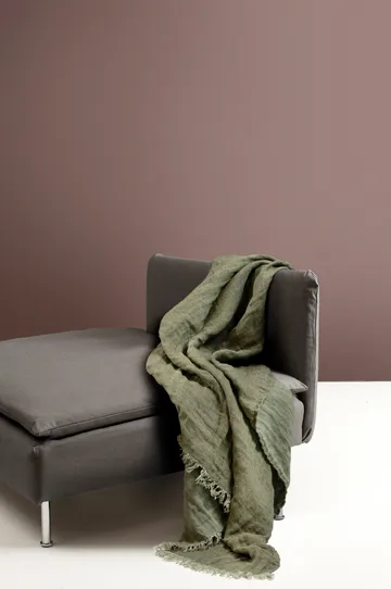 Hannelin pledd fra svenske Himla er mykt og svalt og produsert i 100% lin. Pleddet har sydde langsider, har frynser på kortsidene og har en plissert struktur som passer like bra på sengen som i sofaen eller utemøblene. Velg mellom ulike farger og kombiner med annet lintekstil fra Himla.