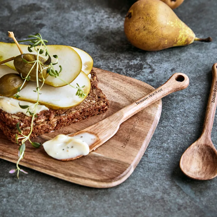 Eya smørkniv 4-pakn. fra House Doctor er laget av akasie, noe som gir hvert eksemplar en unik karakter. De fire knivene i settet er designet for å kombinere eleganse og funksjonalitet. Deres naturlige skjønnhet og individuelle trestruktur forsterker matopplevelsen og passer perfekt til smør og andre påsmurt delikatesser.