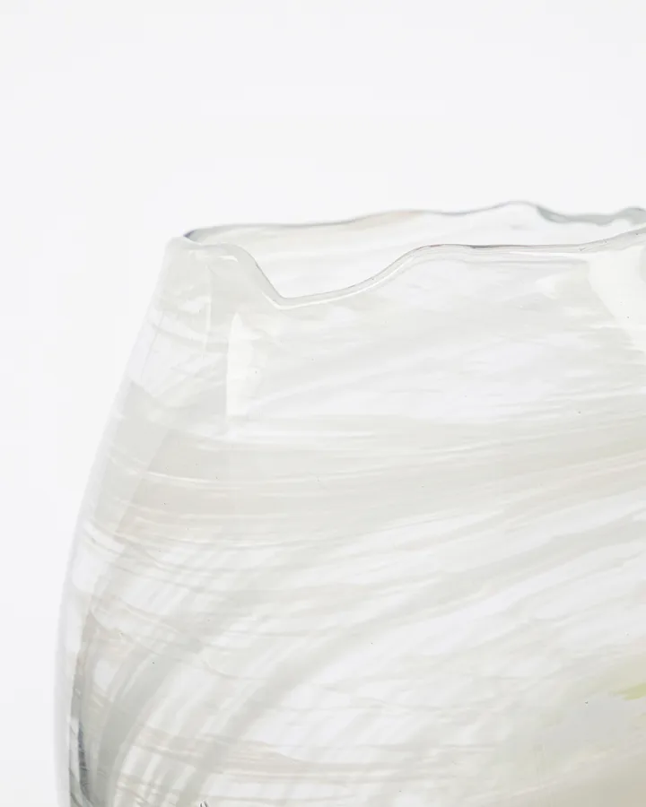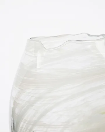 Jupiter vase 20 cm fra House Doctor er en liten glassvase med virvlende støv av lys grønn og en sjarmerende ujevn hals. Den fremhever vårens første snittblomster like fint som et kunstnerisk oppsett av kvister og tørkede blomster. Stilen er organisk og leken, perfekt å plassere på vinduskarmen, sidebordet eller som en del av et personlig stilleben. En enkel detalj som gir rommet karakter og ser vakker ut både alene og i gruppe.