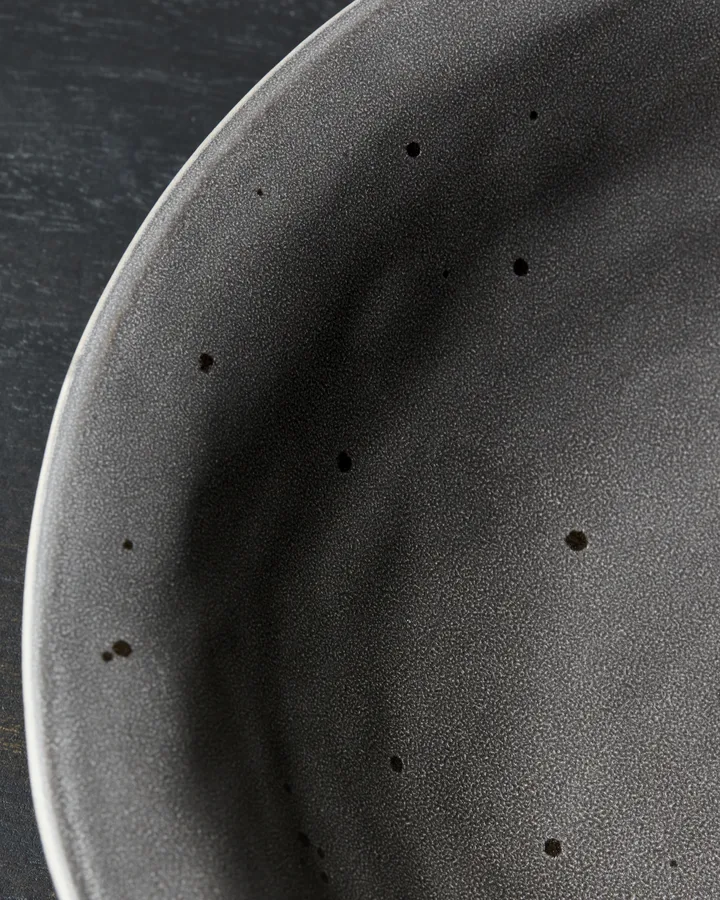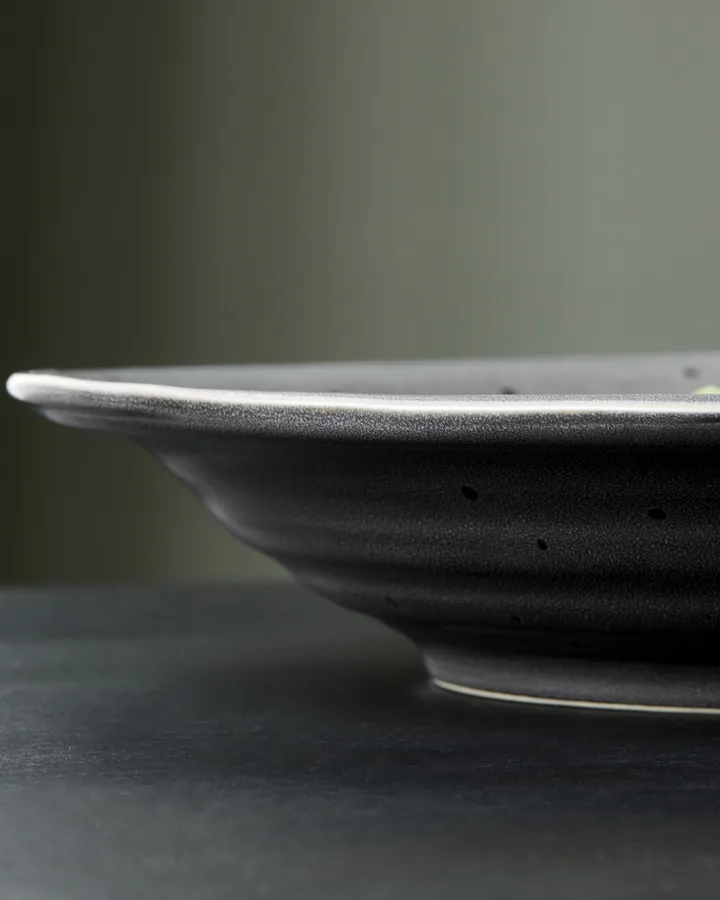 Rustic suppetallerken Ø 25 cm fra House Doctor er en dyp og innbydende tallerken i stengods, utformet for å gjøre hvert måltid til et lite øyeblikk av nytelse. Den mørkegrå glasuren med tonale prikker fanger lyset på en myk måte, og de rustikke variasjonene i overflaten gir hvert eksemplar sin egen karakter. Perfekt for supper, gryteretter eller en varm gryte på bordet — samtidig som den fungerer som en vakker del av borddekkingen når du vil skape en lun og personlig følelse ved spisebordet.