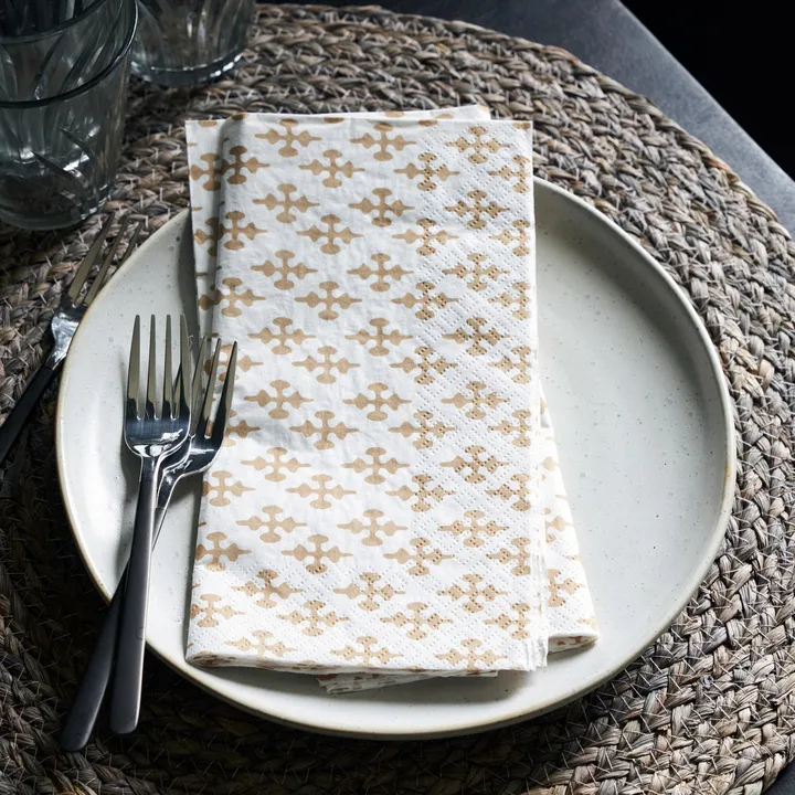 Shield servietter 40 stk. fra danske House Doctor er en pakke papirservietter med et elegant mønster. Fine servietter med trykk passer like godt når du dekker bordet, som til piknik.