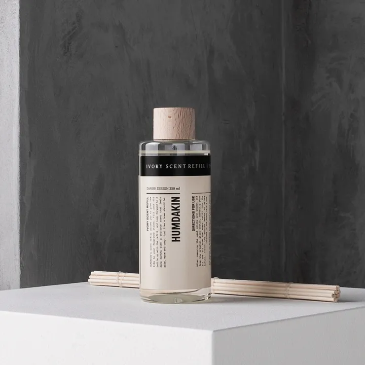 Humdakin duftpinner refill 250 ml passer perfekt til settet med duftpinner fra samme serie og merke. Ta bort lokket fra den opprinnelige flasken, fyll glassflasken med den nye oljen og bytt ut de gamle duftpinnene. Velg mellom Humdakins to signaturdufter Ample og Ivory for en trygg og innbydende atmosfære på for eksempel badet, soverommet eller i stuen.