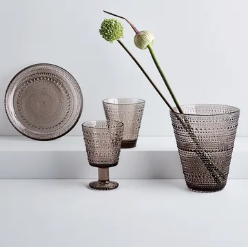 Kastehelmi glass 30 cl 2-stk fra Iittala er en hyllest til naturens skjønnhet, designet av Oiva Toikka. De karakteristiske glassperlene rundt glasset fanger lyset og skaper et levende spill som leder tankene til duggdråper en tidlig sommermorgen – noe som også har gitt serien sitt navn. Den generøse størrelsen gjør glassene perfekte for vann, juice eller en frisk drink, samtidig som de tilfører borddekkingen en myk eleganse. Kastehelmi glass 30 cl 2-stk fra Iittala er et tidløst eksempel på finsk glasskunst der funksjon og poesi møtes i perfekt harmoni.