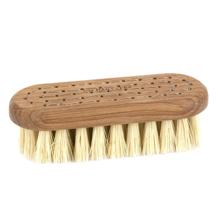Børstene fra Iris Hantverk bør rengjøres med oppvaskmiddel og varmt vann. La dem tørke med kosten ned, slik at vannet renner bort fra treet.