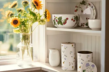 Hammershøi Summer serveringsskål Ø21 cm fra Kähler er en vakker porselensskål med håndmalte motiver av jordbær, blåbær og sommerfugler. Designet av Hans-Christian Bauer og Rikke Jacobsen, er denne 21 cm brede skålen perfekt for salater, frukt eller snacks. En del av Hammershøi Summer-serien som sprer en herlig sommerfølelse ved hvert måltid.