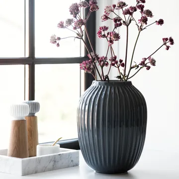Hammershøi vase stor fra Kähler er en tidløs keramikkreasjon formgitt av Hans-Christian Bauer. Med sine karakteristiske riller og klassiske silhuett hyller den Kählers lange håndverkstradisjon og Svend Hammershøis originale former. Vasen blir et varmt, dekorativt midtpunkt i hjemmet—perfekt for både buketter og som et frittstående designobjekt på skjenk eller vindusbrett. Håndlaget følelse og nøye utført håndverk gjør hvert eksemplar unikt og varig, et vakkert innslag som gir rommet personlighet og tilstedeværelse.