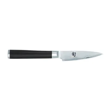 Kai Shun Classic fruktkniv har et blad av kvalitetsstålet VG-MAX, damaskstål i 32 lag og et håndtak av laminert pakkatre. Fruktkniv er en del av Shun Classic-serien der det konvekse bladet sammen med den manuelle slipingen gir kniven en uforlignelig skarphet som lar den skjære gjennom de skarpeste materialer. Den lille japanske kniven passer perfekt til å skrelle og skjære små frukt eller grønnsaker og kan brukes av både ambisiøse hjemmekokker og profesjonelle.