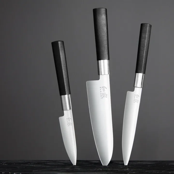Kai Wasabi Black grønnsakskniv med sitt 10 cm lange blad egner seg godt til skrelling og skjæring av frukt og grønt – og utgjør et godt grunnlag i alle knivsett. Bladet har en lett krumning og er produsert i rustfritt stål med høyt kullinnhold. Gjennom en kombinasjon av bambuspulver og polypropen besitter håndtaket antibakterielle egenskaper som fremmer et tryggere arbeidsmiljø. Kniven inngår i Kais Wasabi Black-serie – der du finner stilige kniver av høy kvalitet for alle formål.