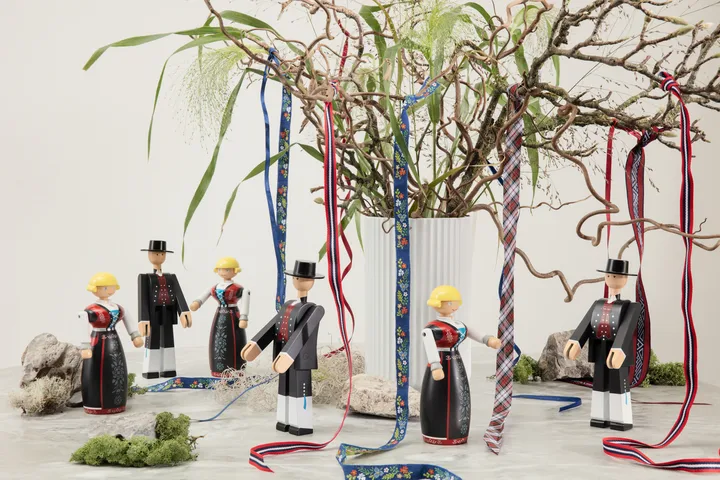 Kay Bojesen kvinne i norsk folkedrakt er laget av FSC-sertifisert malt bøk. Kvinnen er kledd i en folkedrakt som vanligvis bæres i bryllup eller på Norges nasjonaldag, 17. mai. Kombiner med Kay Bojesens mann i norsk folkedrakt for å få et tradisjonelt par.