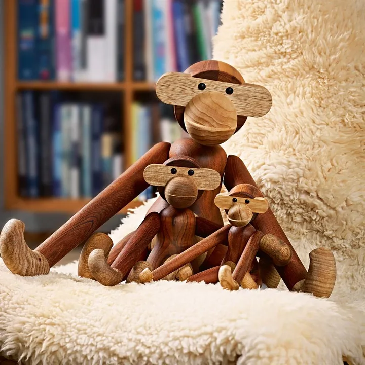 Kay Bojesen stor ape fra Kay Bojesen Denmark er en varm og elsket trefigur designet av Kay Bojesen i 1951. Apen, håndlaget og laget av naturmaterialer, har bevegelige armer, ben og hode og bærer det karakteristiske smilet som gjør den så sjarmerende. Med sine lange armer fungerer den like godt som lekent interiørdetalj som personlig gave til barn eller voksne som setter pris på skandinavisk design. En tidløs klassiker som forteller en historie og sprer glede i hjemmet.