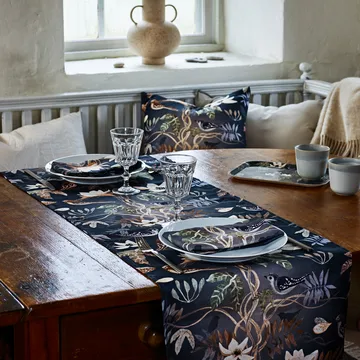 Moonlight brett 20 x 27 cm fra Klippan Yllefabrik er laget av FSC-sertifisert laminert bjørkefinér, noe som gjør det til både en dekorativ og bærekraftig detalj i hjemmet. Brettet prydes av et vakkert mønster av løvblader og fugler som er designet av designerduoen Anna & Finn. Det mindre formatet gjør at brettet passer utmerket til både servering og som underlag for fine arrangementer med lysestaker og vaser.